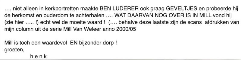 BESTE LUIDEN, aan de St.Hubertsebinnenweg heeft ooit een kapel gestaan, toegewijd aan St.Antonius Abt. Toon Ermers stuurde mij vorig jaar een kaartje uit 17.. waarop een kruisje de plaats aangaf. Na bestudering herinnerde ik me, dat in de Reformatietijd sprake is geweest van een "verloren" altaar uit de parochie Mill, zo meldt Taxandria. Beide feiten moet ik nog eens opzoeken. Zeker nu ik weet, dat een geestelijke uit Raalte een beneficie ontving uit de opbrengsten van dit altaar. Onze Jacob Nelissen, apostolisch vicaris-prefect van Java (*Mill 1752 +Batavia 1817) heeft mogelijk hiervan profijt gehad. Hij was met deze pastoor uit Raalte bevriend, zoals uit gevonden correspondentie blijkt.