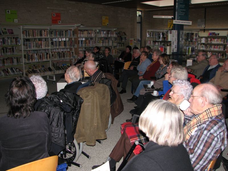 Hier beneden de "Zitting" van de Gelderlanderpers in de nieuwe Bibliotheek.