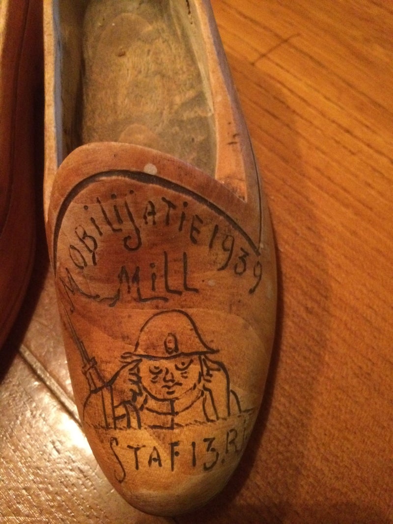 Hier beneden Een Klomp van Staf 13 RI. uit de Mobilisatietijd in Mill in 1939. Deze Klomp heeft dhr. Broer van Thiel gekregen van een Collega Horecaman uit Sibbe bij Valkenburg. De Vader van dhr. Hub Damoiseaux was in 1939 gelegerd in Mill. Zie voor meer bijzonderheden op de Pagina "Mobilisatie" van deze Website.