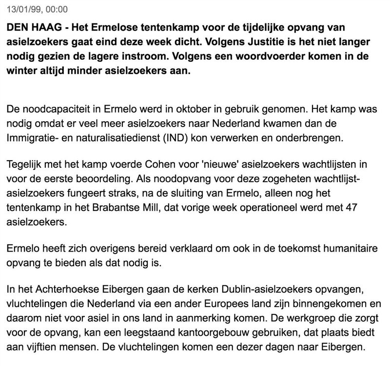 Ingebruikname noodopvang asielzoekers in Mill op 5 januari 1999.