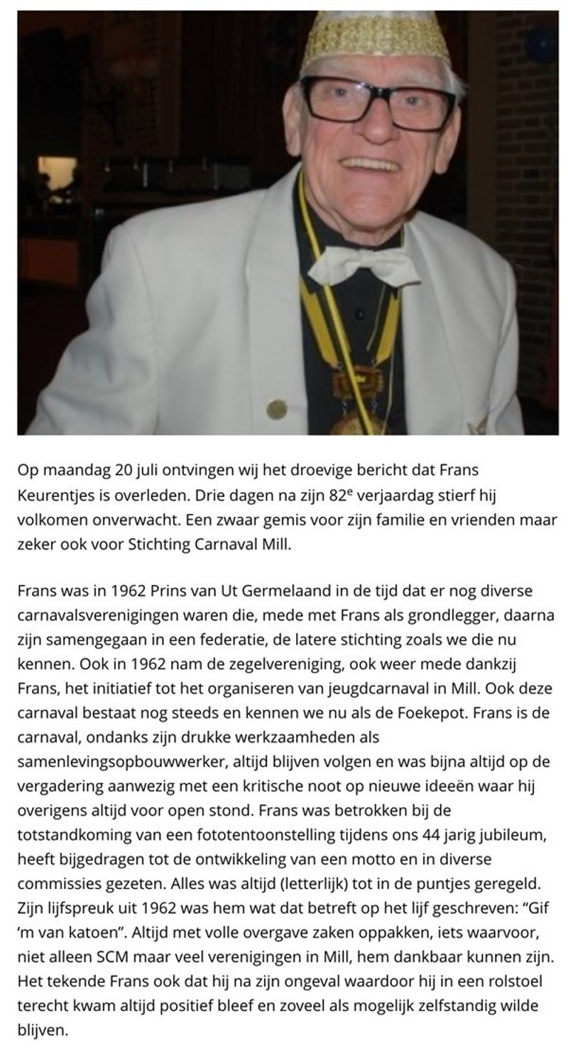 Hier beneden een Artikel in De Koerier op 9 dec 2014 over de bekende Millenaar dhr. Frans Maas die in 2015 als Kandidaat Brabander van het jaar is uitgeroepen door Omroep Brabant.