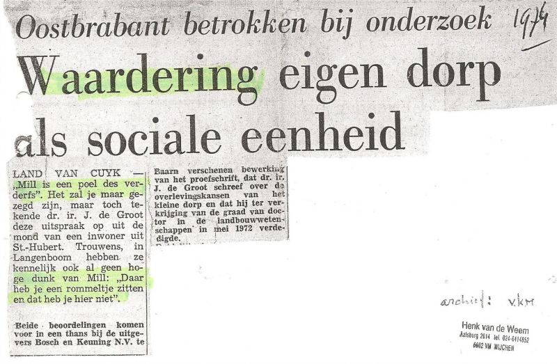 Hier beneden een Proefschrift uit 1974 van de Gemeente Mill van dr. ir. J. de Groot over de Politiek in Mill: "Een Poel des Verderfs".
