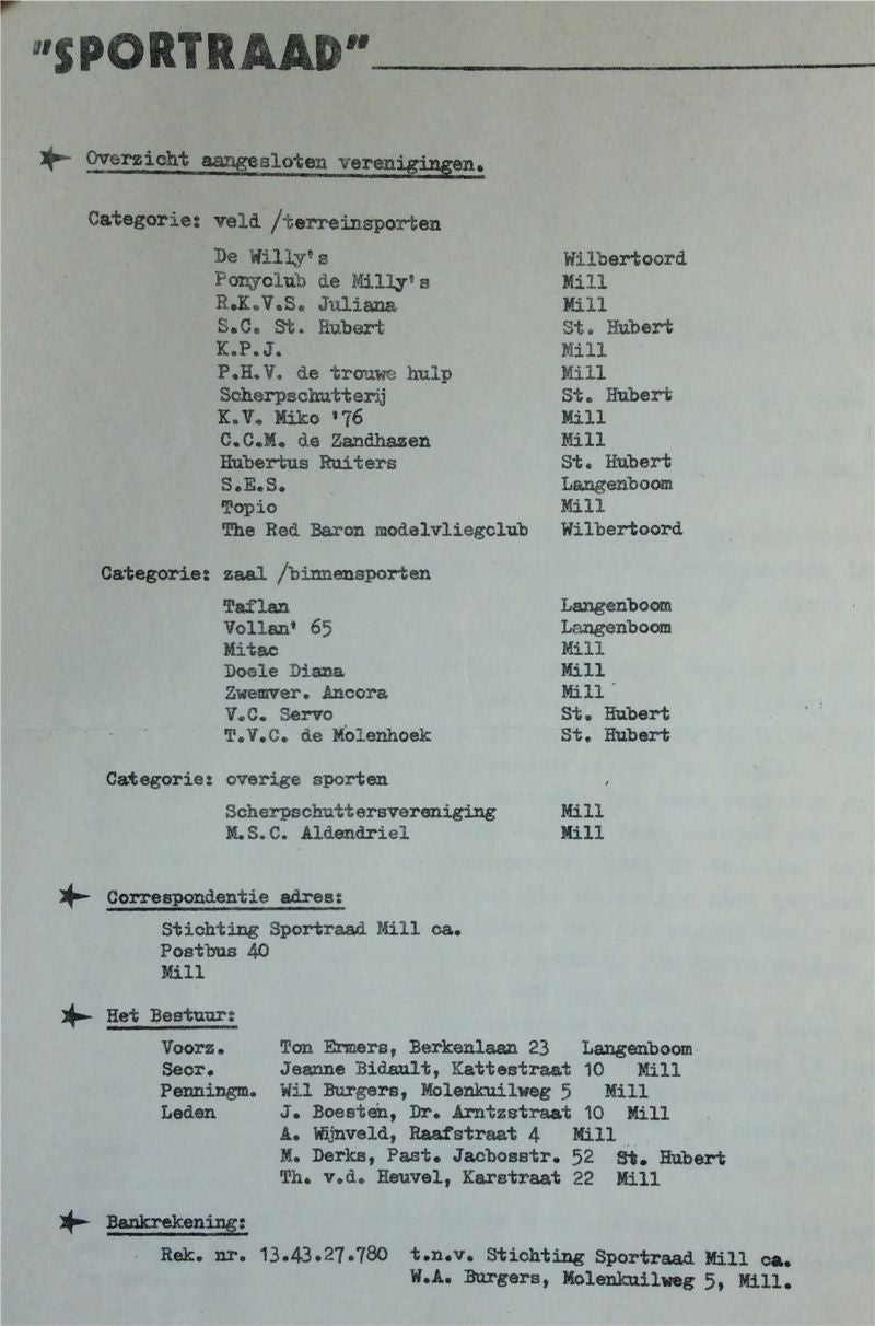 Hier beneden bijzonderheden over de Oprichting van de Nieuwe SPORTRAAD in 1979 in Grand Café Zaal De Stoof van dhr. Jan van der Steijn in Mill.