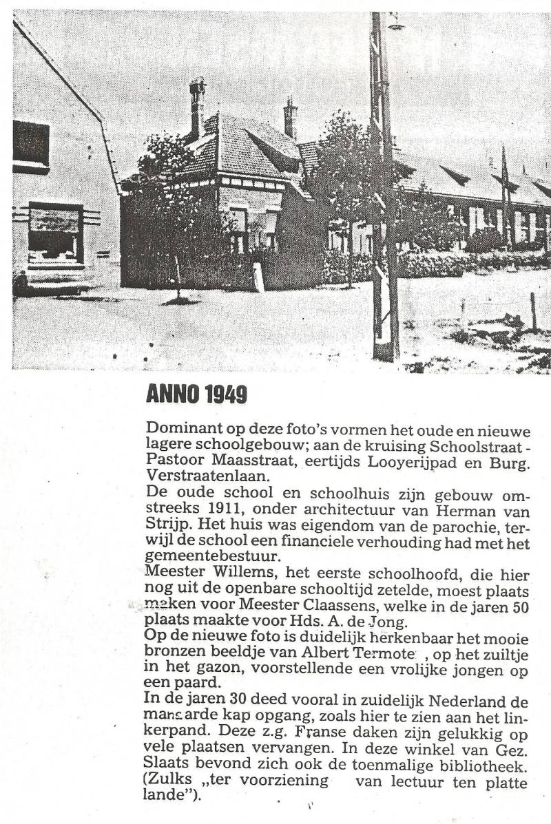 Hier beneden het Huis van de fam. Hub. Verstraaten aan de Schoolstraat 45 A, daarnaast de Landbouwschool en daarnaast de Winkel van dhr. Veldpaus.