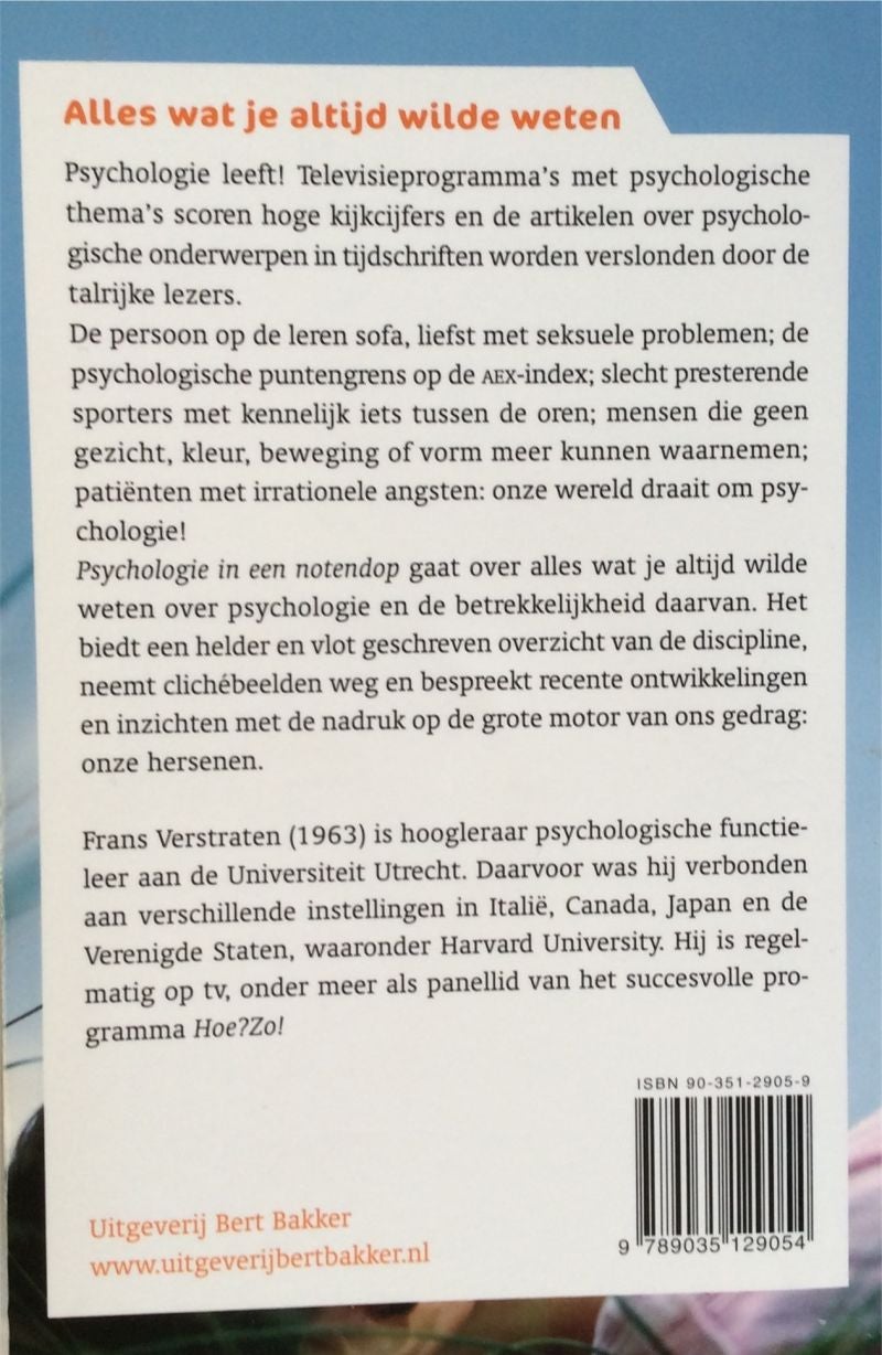 Hier beneden enkele Pagina's van Het Boek Psychologie in een Notendop anno. 2006 van Professor doctor Frans Verstraten uit Langenboom. ISBN 90 351 2905 9.