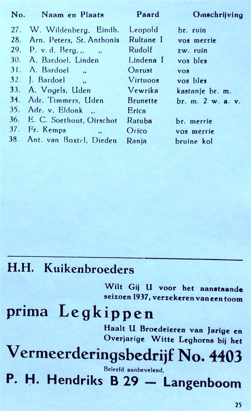 Hier beneden enkele pagina's uit de uitgave van het Groot Landelijke Concours-Hippique dd. 30 augustus 1936 in Langenboom met enkele van de vele oude advertenties.