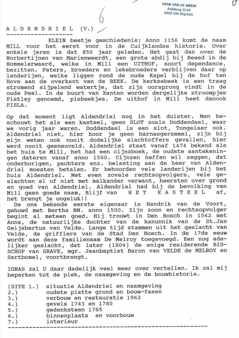 Hier beneden emailwisselingen tussen de Heren Henk van de Weem, Drs. Jan Lange en Maarten Hermanussen met info over Kasteel Aldendriel.