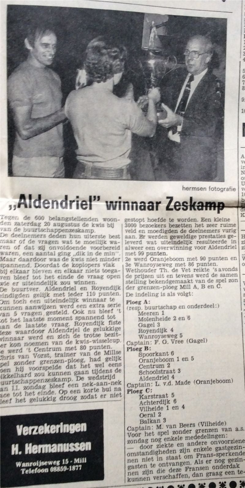 Hier beneden De Buurtschap Aldendriel die in 1977 de Bekende Millse ZESKAMP won.
