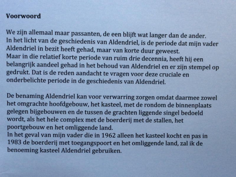Hier beneden een artikel uit de Gelderlander over de familie van drs. J. Van Oudenaarde, die het totaal vervallen Kasteel Aldendriel in 1960 kocht en gelukkig het Kasteel o.a. door Monumentenzorg liet opknappen.