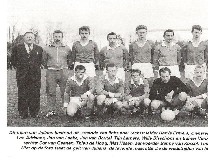 Hier beneden op de foto dhr. Jan van Boxtel met het eerste Team van Voetbalclub Juliana in 1965.