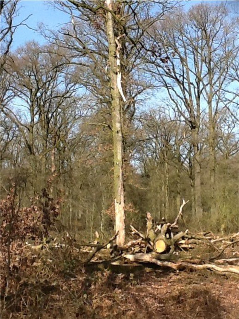 Hier beneden Foto uit 2016 van het kappen van de Goede Bomen en het laten staan van Kapotte bomen op Tongelaar .