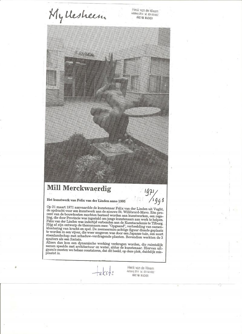 aarde" uit de WEDEROPBOUW - tijd '40/45 als daar zijn : Ir. Bolsius, Ir. Siebers, Harrie Hanssen, Jan Strik, hfd.wederopbouw-bureau, Buskens, Sandheuvel, Ir. Ringers, arch. M.van Beek, Eindhoven enz. Deze laatste is de architect van de aanbouwen aan de kerk van Mill in 1939.