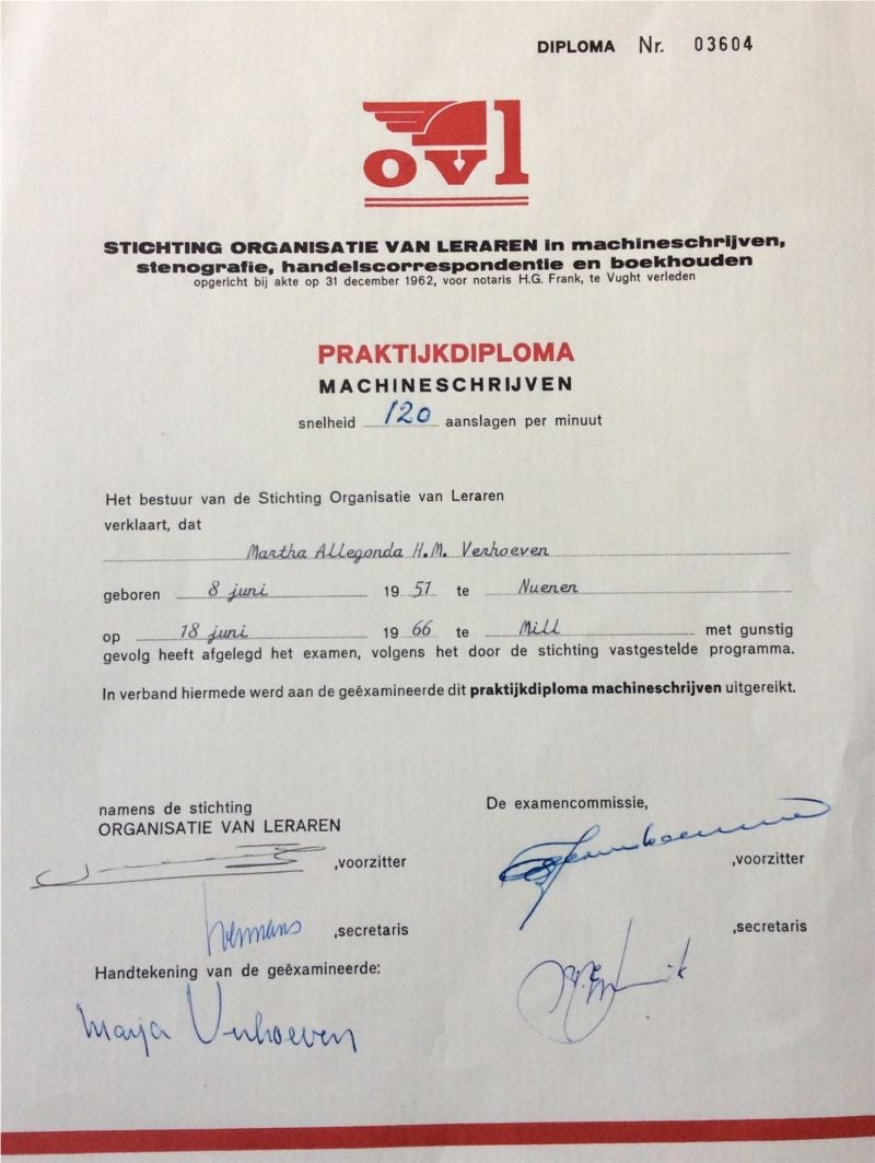Hier beneden het Middenstands-Diploma van mij in 1968.