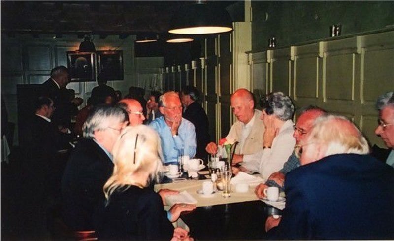 o.a. Kapelaan van Moorsel met Personeel van de M.U.L.O. aan de koffie in het Gemeenschapshuis "Marienweerd" in 1962.