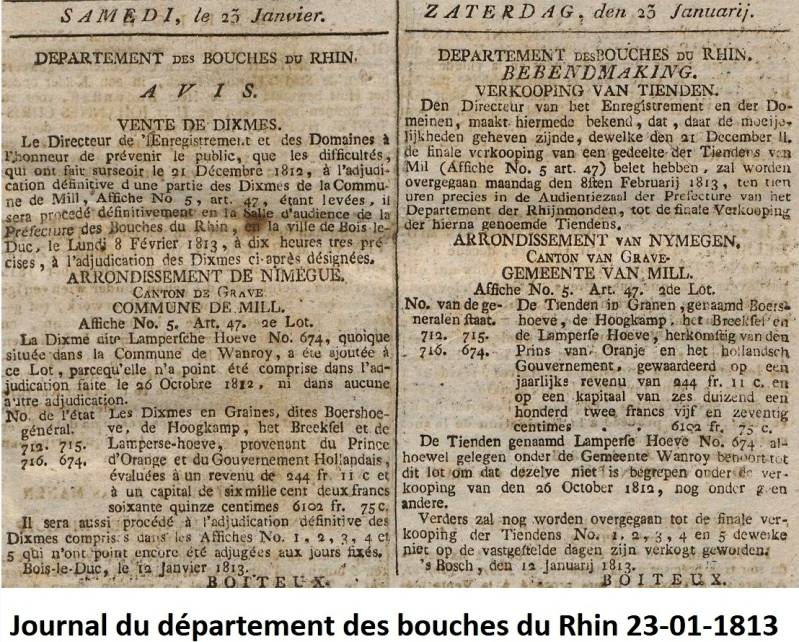 Hier beneden een Journal de Departement des Bouches du Rhin over de Domeinen in Mill dd. 23-01-1813