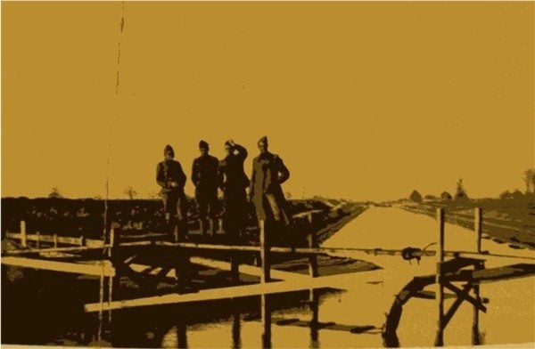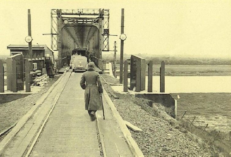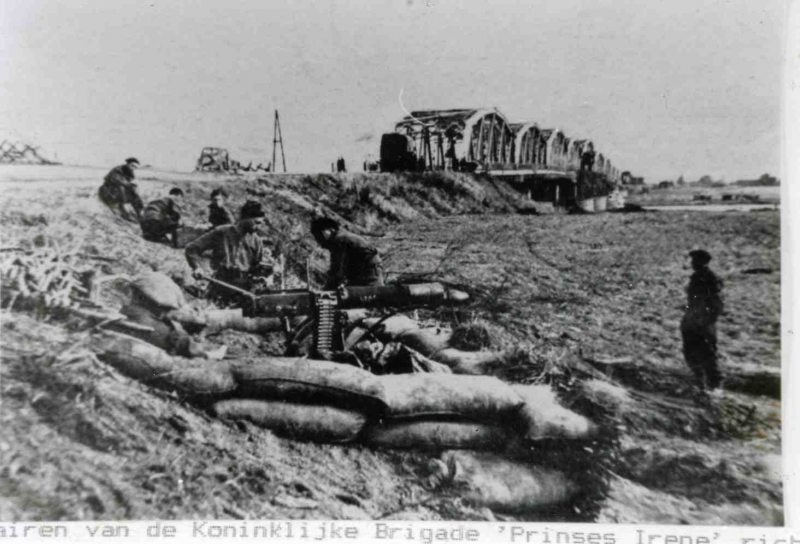 Hier het Duitse Leger in de aanval op de Gennepse Maasbrug.