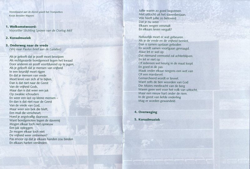 "Stichting Sporen van de Oorlog" is op 10 mei 1995 in Mill opgericht, precies 55 jaar na het begin van de oorlog. Meer bijzonderheden over de Oorlog vindt U op de Pagina "Bevrijding" van deze Website. De Voorzitter van de "Stichting Sporen van de Oorlog" in Mill in 2014 is: dhr. Carel van Genugten.