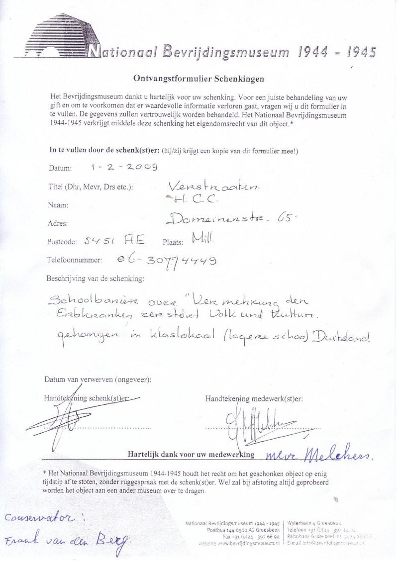 Hier beneden het adres van Mr. Wabe Braam, bestuurslid van de Stichting Sporen van de Oorlog.