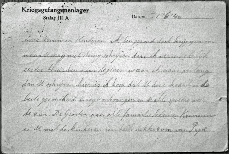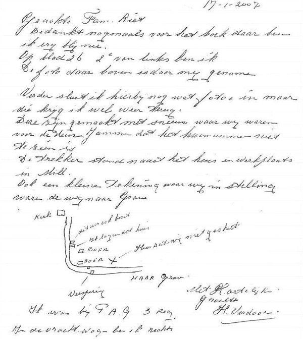 …... een TV-reeks, die 2de paasdag begon als 1ste van 5 afleveringen. Ik wil proberen deze te volgen. Mijn ervaringen en mijn mijmeringen beschrijf ik hieronder. Ik was 5 jaar op 10 mei 1940. ---- ( ben benieuwd of Mill ook aan bod komt ……? ) INLEIDING ….. onze Pa had samen met zijn broer, Oomjanus, een aannemers en timmerbedrijf, gevestigd aan de hoogveldscheweg. Waarom ik zo duidelijk, de hoogveldscheweg noem heeft de volgende oorzaak. Op de evacuatie regels door de overheid opgesteld, stond Piet van de Weem vermeld, behalve als leider van de hoogveld-aanwonenden ook als verantwoordelijk voor de evacuatie van het Liefdesgesticht. Dat was het klooster met ca. 15 nonnen, een aantal gehandicapten en een aantal ouden van dagen. Nou was mijn Pa geen onbekende voor de zusters, die buiten het klooster ook nog 2 scholen bedienden. Voor de timmerman was daarvoor altijd wel ergens werk. De zusters beschouwden hem als ‘eerst aanwezend’ hulpverlener ! EVACUATIE Het zal aan de graad van betrouwbaarheid hebben gelegen. Maar ‘goed over nagedacht’ had de opperste leiding van een mogelijke op handen zijnde evacuatie, daarover in elk geval niet. Zeker niet bij een snelle reactie ! Aldus fietste Pa op die 10de mei, nadat hij de hoogveld-gezinnen had aangezegd zich gereed te maken voor de vlucht naar Wanroy, richting Verstraatenlaan naar het Klooster. Bij grossier Verbruggen vlogen de kogels door de Oranjeboomstraat. De Duitsers hadden al vanaf de kerktoren een vaste positie ingenomen en schoten met een mitrailleur op alles wat zich in de straten bewoog. Als ik die muur bij Dr. Arntz maar kan bereiken, dacht Pa, dan heb ik dekking en kan ik ongeziens bij het oudemannenhuis komen. Gelukkig redde Dr.Arntz de penibele situatie van Piet van de Weem. Hij riep door een openstaand raam: “Waar ga je naar toe, Van de Weem ?” Ik moet naar het klooster, de zusters gaan helpen. “Die zijn juist vertrokken met de ouden van dagen ! De brandweer heeft ze naar Wanroy gebracht “ . Pak van Pa’s hart ! Telefonisch verkeer bestond in die spannende uren alleen tussen, gemeente (evacuatie-leider wethouder A.W.van Hout ), pastoor Rath, Dr.Arntz en burgemeester Van Nispen ( aan de overzijde van het defensiekanaal ). HULP Ondertussen was ook Marie van Oom Bert uit de Schoolstraat via d’n huppelpad naar ons toe gekomen, vooral om te helpen. “Tante Dora, ons Moeder, zal het wel druk hebben mi-al-die-klenkiender” zal Tante Es wel gezegd hebben ! Gepakt en gezakt vertrok tegen elven het hoogveld gezamenlijk. Wel had Pa nog even zijn buitenmodels uniform van de achterste zolder gehaald en in de beerput laten zakken. De Duitsers moesten eens denken, dat hij gedeserteerd was. Van die tocht kan ik me nog herinneren, dat in de Koksebeek drie militairen stonden, dat er geschoten werd en dat de middelste omviel. Ik weet niet meer of het Hollandse, dan wel Duitse soldaten waren. Ons Moeder was met de tweeling in een kinderwagen, ons Mientje rechtop zittend, Annie en ik elk een stang vasthoudend lopend naar Wanroy. De jongens van Oomjanus trokken de handkar met hult en bult. Onze Pa en Drien van Oomjan, onze hulp, gingen met de fiets; ook Tantekee reed mee, allemaal pummelkes achterop. Ze liepen meer naast de fiets, dan dat ze trapten; overal vandaan werd geschoten. De vlucht naar Wanroy was een lange bange barre tocht. Net voor Wanroy explodeerde de banden rond de bomen. Alle naast de Millscheweg staande bomen kwamen dwars te liggen. Opdracht van het Militair gezag, ons leger! We werden gedwongen via een karrenspoor onze weg richting Wanroy te vervolgen. Even voor het autobusbedrijf van de fa. Pijnappels in Wanroij brak, tot overmaat van ramp, ook nog een burrie van het handwagentje. Hult en bult werden overgeladen op de paard & wagen van Toon van Vorst. Die was al druk bezet en bevolkt met kinderen en de noodgoederen van verschillende hoogveldse families en …. met Had de Klein, die met leunstoel (proast!) compleet , zoals ze in huis zat, op de platte wagen was getild.