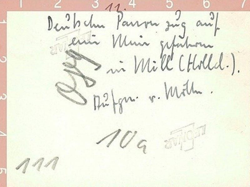 Hierbij de bijbehorende Duitse uitleg achter op de benedenstaande foto die de duitse militairen in 1940 naar huis stuurden.