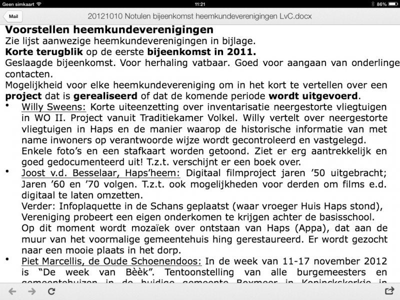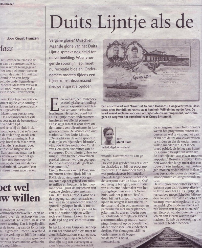 Bronvermelding: Henk van de Weem van "De Vrienden van Myllesheem" in communicatie met Drs. Jan Lange van De Krommendijk in Mill.