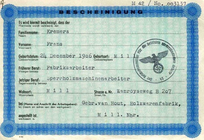 Dhr. Eugène Tilly was spoorwegbeambte in Mill en kwam om het leven op 10 mei 1940.