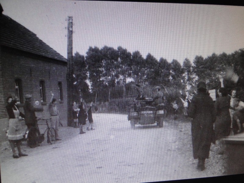 BESTE WILLEM, als Geert Kaalverink niet zo goed had opgelet, hadden we deze foto NOOIT gekregen. Hij heeft ze van de TV geplukt ! Zegt-ie. Deze moffen komen van de maasbrug en lopen OEFFELT binnen ! Rechts, bij het kruisbeeld gaat de weg naar HAPS. (Is onlogisch, kan eigenlijk niet ?) Van marcheren is nog geen sprake !! GEERT BEDANKT !