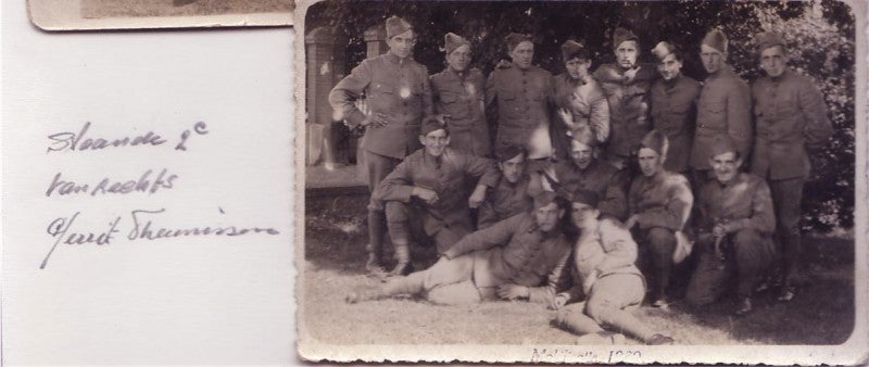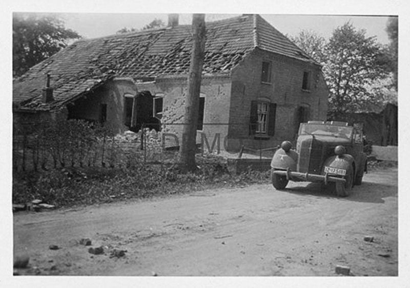 Hier beneden een foto van Duitse Militairen op 15 mei 1940 in St. Hubert van de Compagnie Infanterie 456 Weiss:"Holland hat Kapituliert."