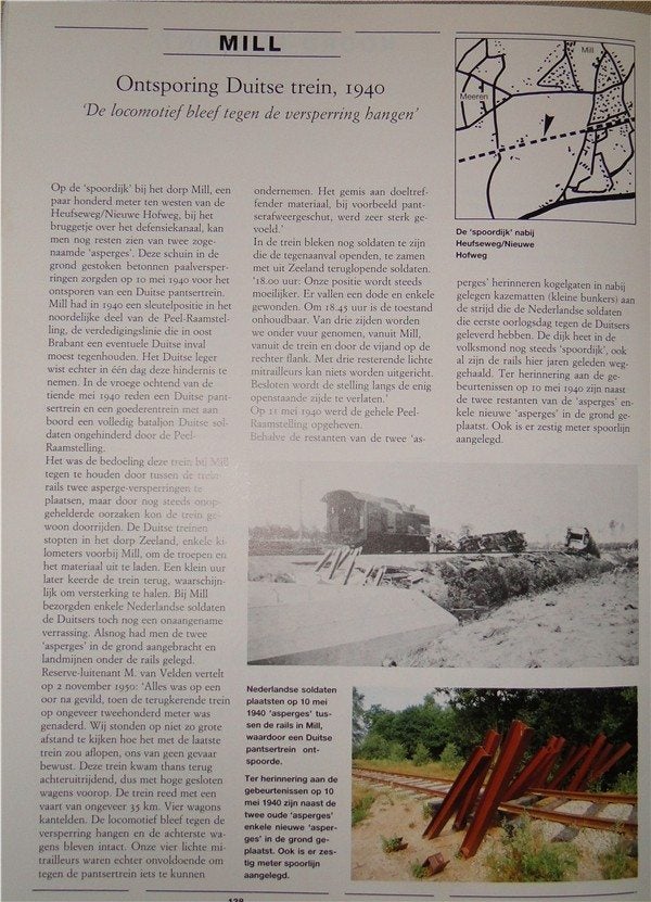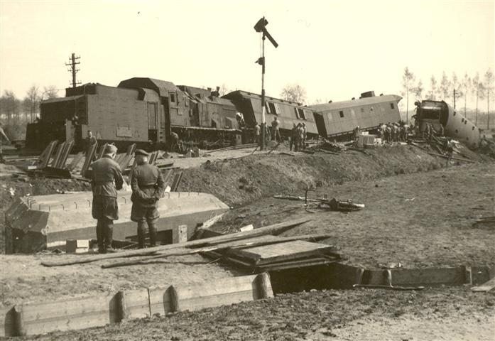 Op 10 Mei 1940 om ongeveer 05:30 ontspoorde de Duitse pantsertrein in Mill.