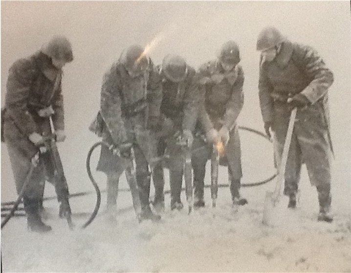 Hier beneden bij het FranciscanessenKlooster Duitse Militairen bezig met het aanleggen van kabels voor verbinding met de Duitse Wehrmacht.