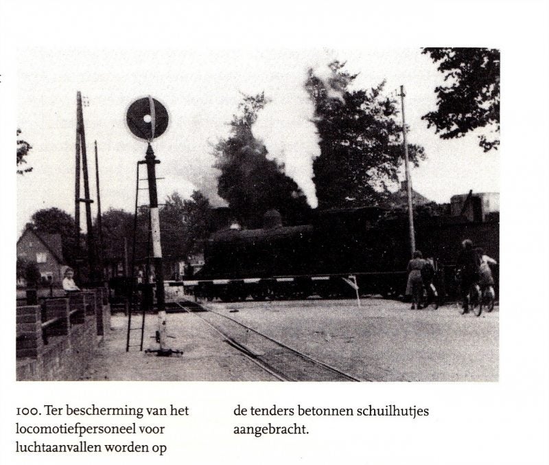 Hier beneden een Stoomlocomotief die de Wanroijseweg oversteekt vlak bij Houtfabriek Van Hout.