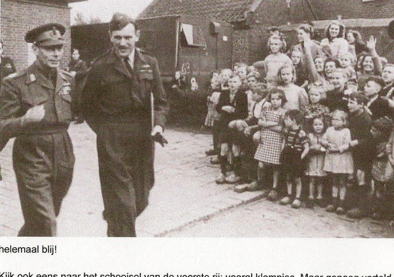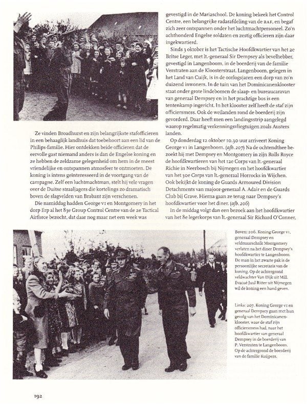 Hierbij een copy van de foto van Koning George VI in Langenboom. Er staan nummertjes geplakt op de personen: Namen die bekend zijn: 1. Koning George VI 2. Generaal Dempsey 4. Jet Mulders uit Veghel 5. Truus van Huisseling 6. Pieta Braks 7. Juul Ritter uit Nijmegen 10. Sjef Verstraten 11. Annie Verstraten 12. Koos Willems 14. Tina van Duijnhoven 16. Dora Verstraten 26. Veldmaarschalk Montgomery 27. Veldwachter P. van Dijk