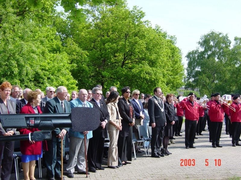 Opening Oorlogsmonument "De Wenende Vrouw" (gemaakt door dhr. Peter Rovers van het Kasteel in Heyen ) aan de Langenboomse weg door Burgemeester dhr. Frank van Beers op 10 mei 2003. Het monument is voor 3.R.I. het 3e Regiment Infanterie.