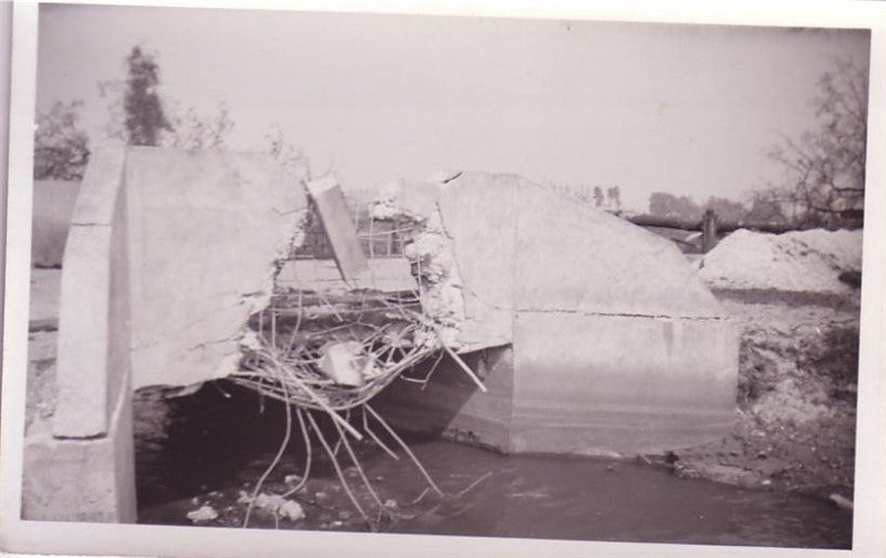 VLUCHTOORD WANROY Bij cafe Centen, Koos Centen was een collega-aannemer, waar onze Pa een onderkomen meende te vinden was het een drukte van belang. Ik herinner me nog, dat onze tweeling op een dekentje onder het biljart lag te krijsen en daar ook gevoed werden. Voor de Van de Weem’s was in deze herberg geen plek. Gelukkig kende mijn Pa veel mensen en veel boerderijen in de omgeving. Daarom klopte hij aan bij Jan Nabuurs aan de Peelstraat. Daar konden wij terecht, op stal. Ons Moeder kreeg een slaapkamertje (opkamer voor Vader & Moeder en 3 kleine kindertjes). Oomjan met de gezinnen van de Royendijk was al eerder gearriveerd, maar verkoos een verblijf op Berk & Bos, een boerderij, een eindje verderop. In de schuur van de boerderij zat de familie van Sambeek van het Molengat. Het was een drukte van jewelste. Ondertussen ging de oorlog verder. De moffen konden zomaar niet door de stellingen van onze militairen komen en ook de gekantelde pantsertrein lag in de weg, reserve aanvoer was niet mogelijk. Er kwam vliegtuiggeweld aan te pas, stuka’s jankten door de lucht en er vielen bommen op de stellingen en de loopgraven, aan de overzijde van het kanaal. In Wanroy werden schuilkelders ingericht. Bij Jan Nabuurs hadden wij het makkelijk. Onder een betonnen brug over een droge sloot was een prima oplossing. Als het echt spannend ging worden konden we daaronder met zijn allen veilig onze beschutting vinden. ( 2de aflevering volgt ) bijlage: kaartje met aangegeven route Hoogveld-Mill > Peelstraat- Wanroy.
