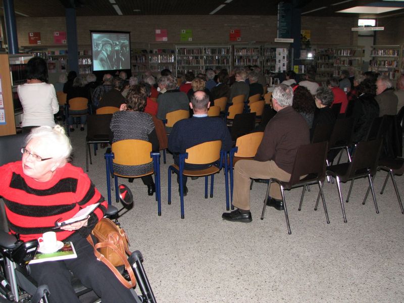 Presentaties, door Hub. Verstraaten, van Studio Domeinzicht van DVD's met Oude Ansichten en films bij BiblioPlus in de nieuwe, oude Bibliotheek aan de Oranjeboomstraat in Mill op 17 september 2008.