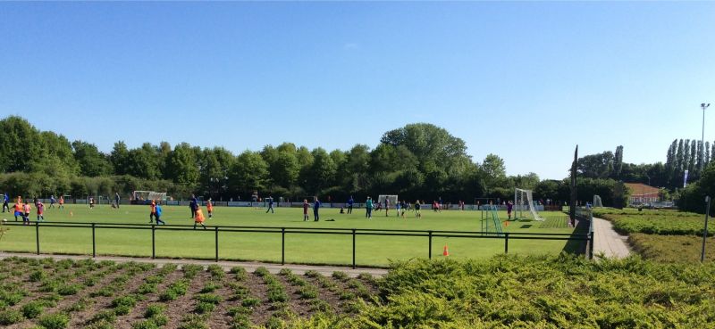 Hier onder 't Voetbalveld van Juliana aan de Wilhelminastraat.