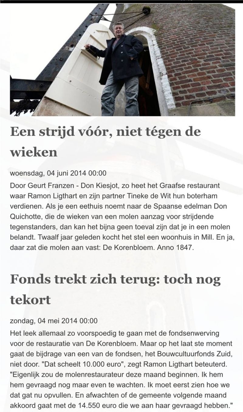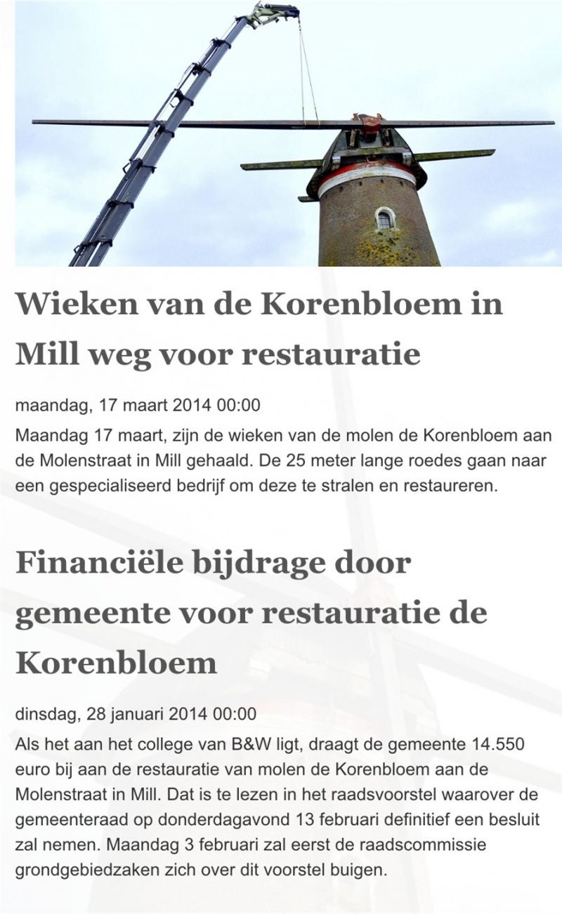 Misschien heeft Mill de kans dat de Molen "De Korenbloem" nogmaals gerestaureerd wordt in 2014.